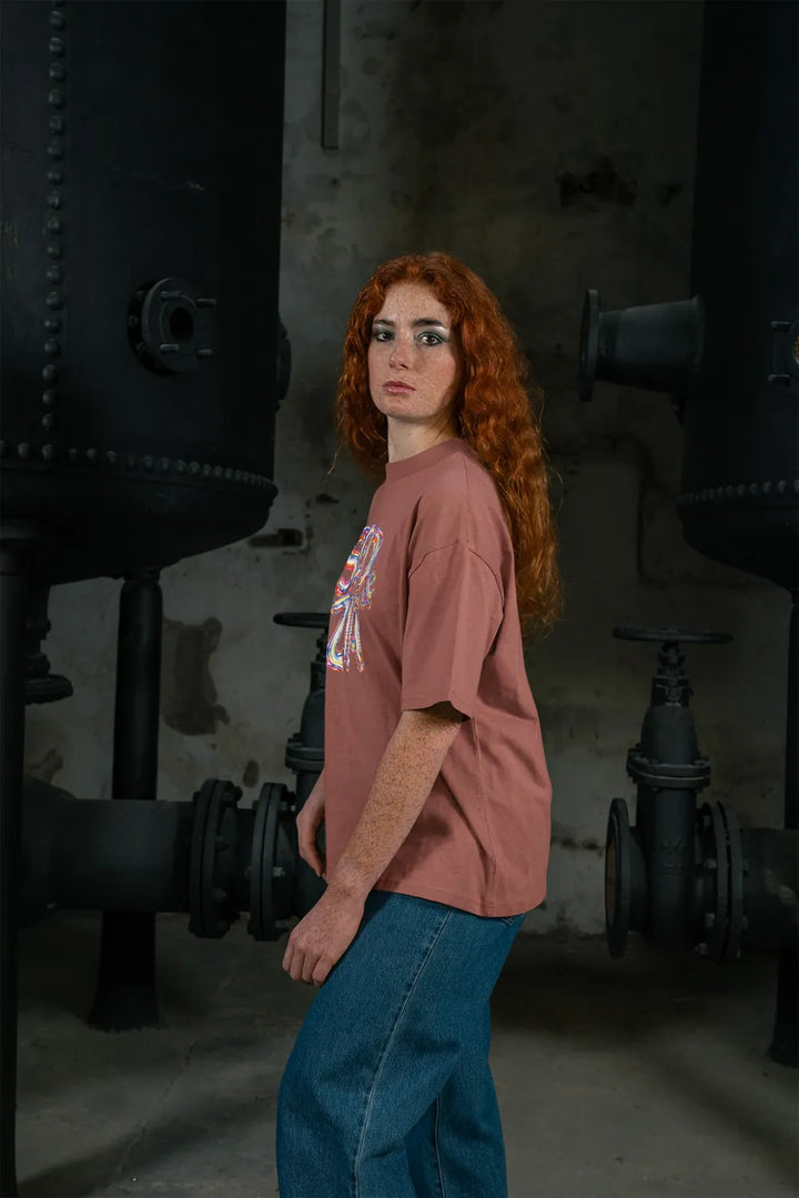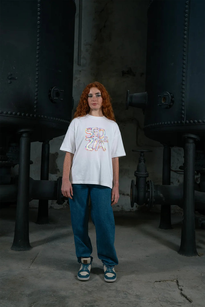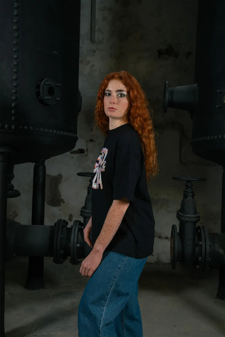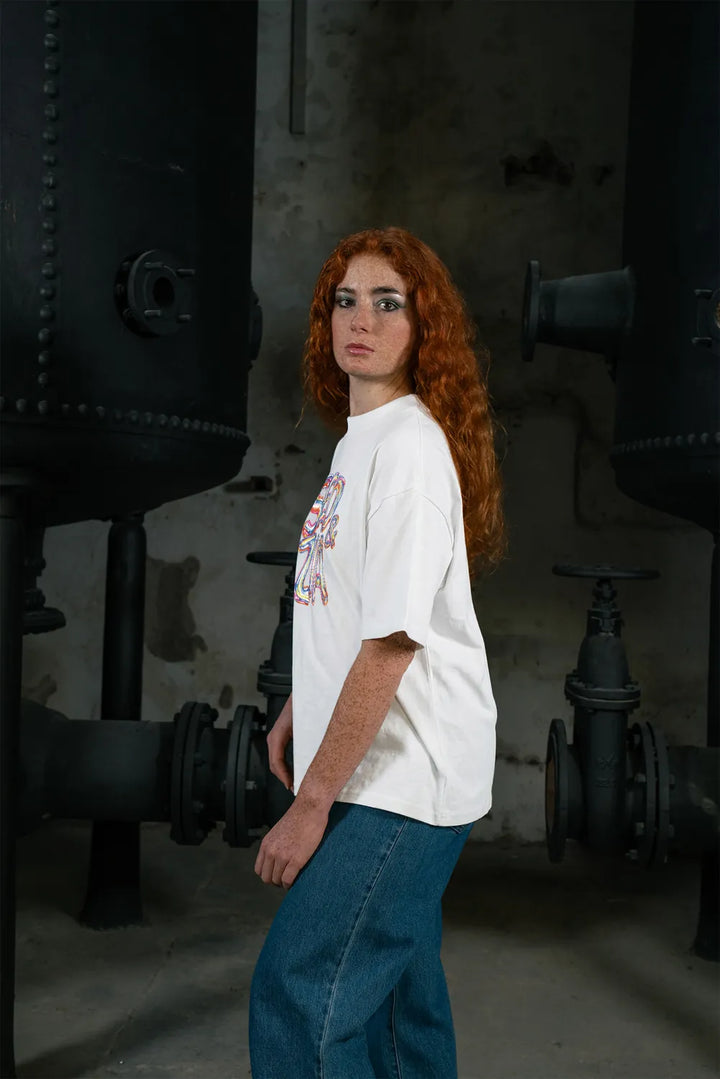 «Inflatego» ist eines der schwersten Tees in unserer Kollektion: 200 g/m² geben ihm echtes Gewicht und Substanz. Es fällt perfekt, ohne jemals steif zu wirken. Der Oversized-Schnitt mit breiten Schultern und elegantem Kragen verkörpert den ultimativen Streetwear-Look — für jeden Körpertyp.