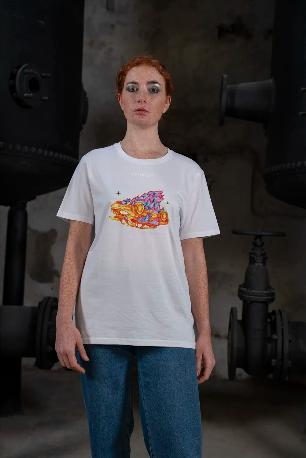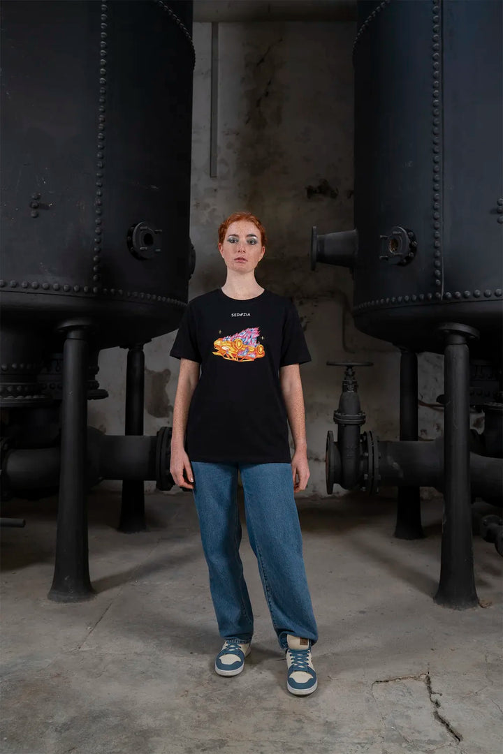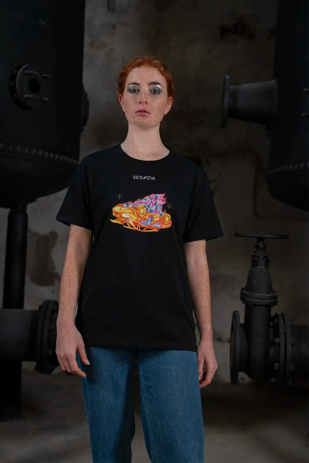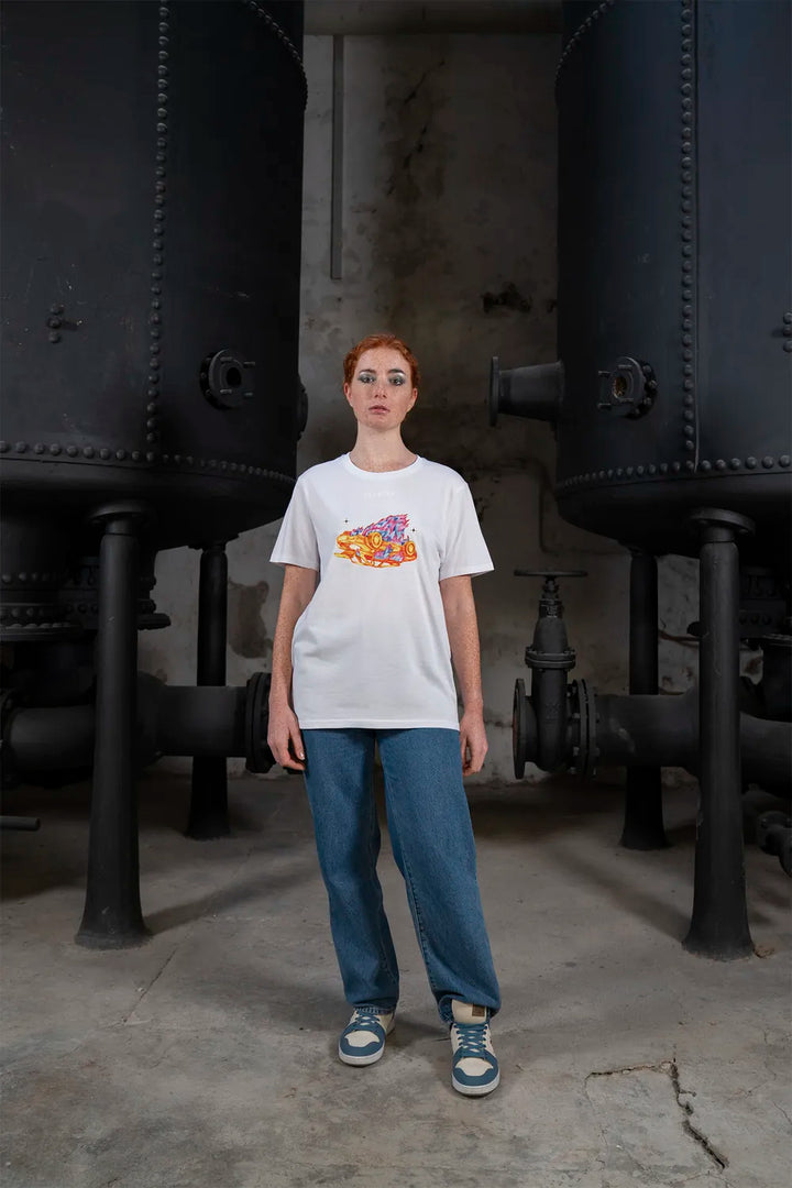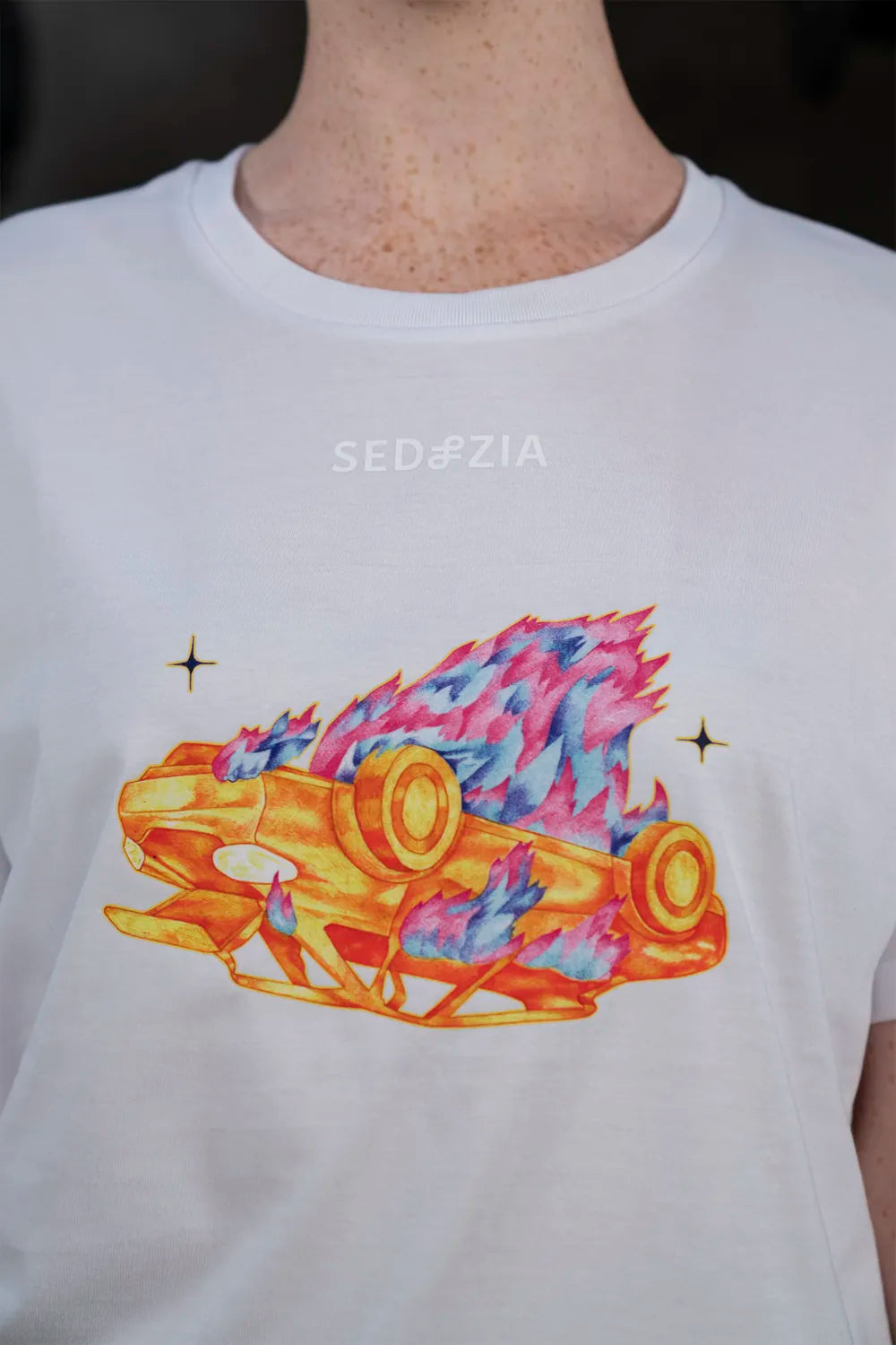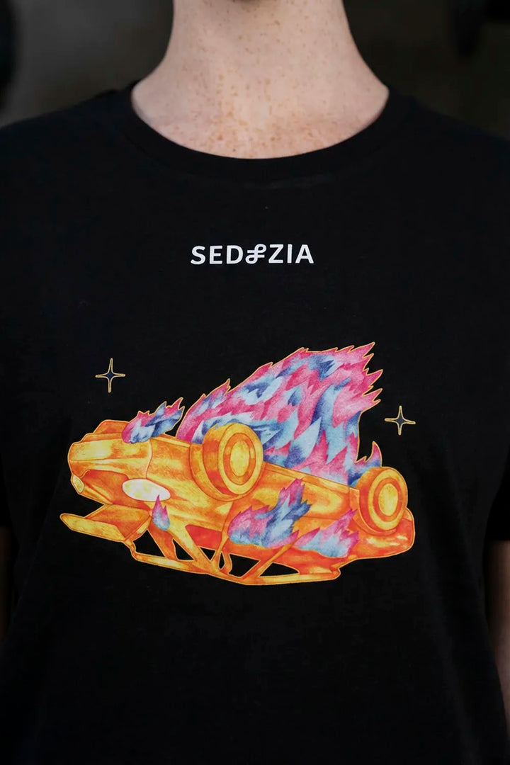 Das Artwork „Statuscide" zeigt ein brennendes, auf dem Kopf stehendes Auto. Verbrenne die Dinge, von denen du dachtest, sie würden dich definieren. Streife ab, was dich beschwert. Manchmal muss das Alte in Flammen aufgehen, damit du leichter wirst.